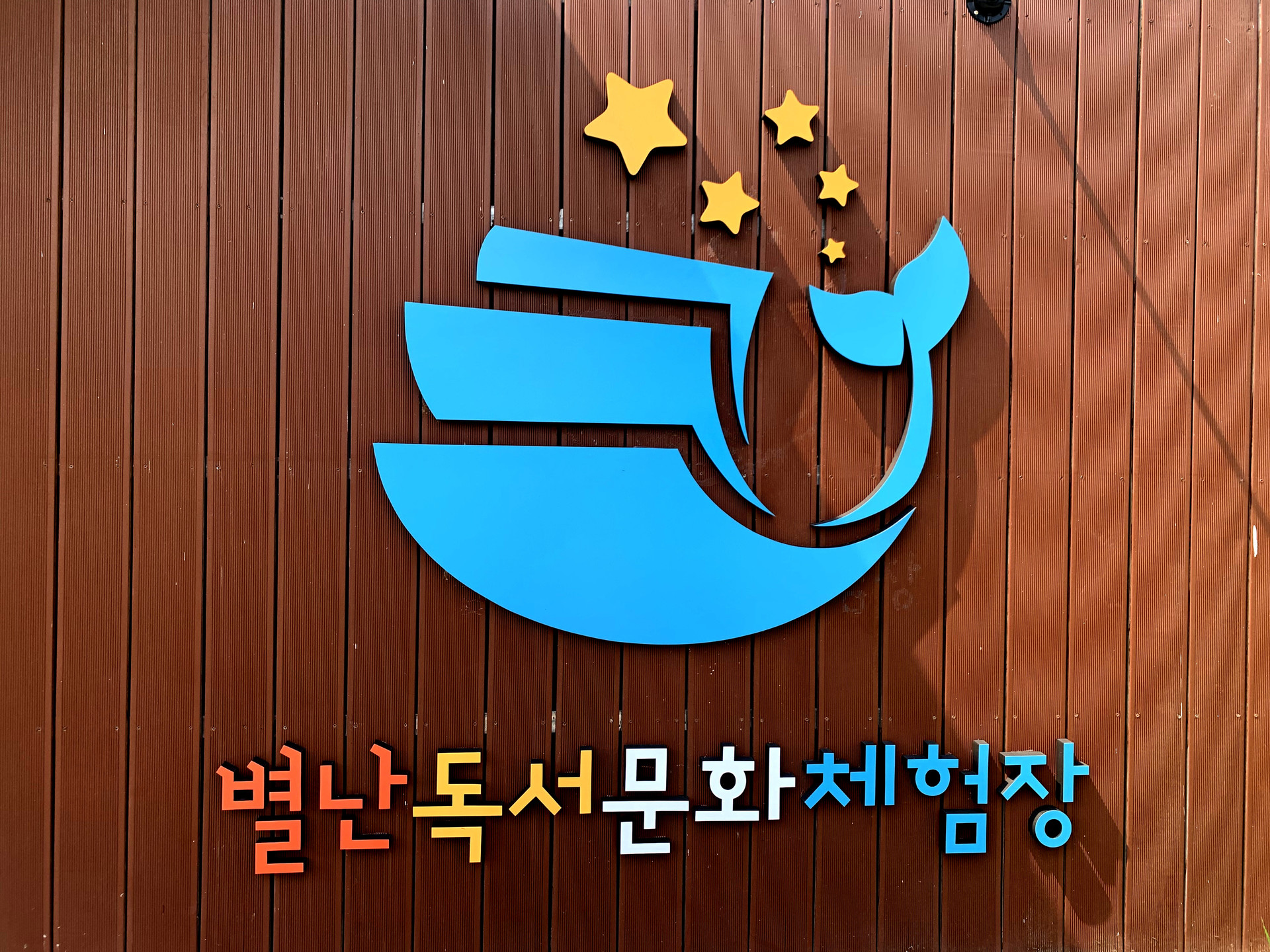 별난독서문화체험장의 마스코트 "책고래" 현판입니다.