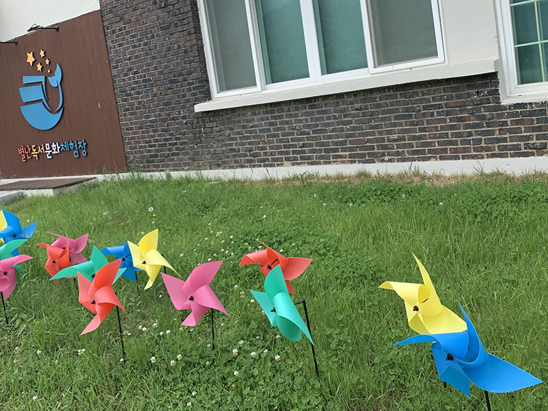 또한 교사동 앞 마당에는 바람개비들이 꽃인양 서있는 바램개비 정원이 있습니다.