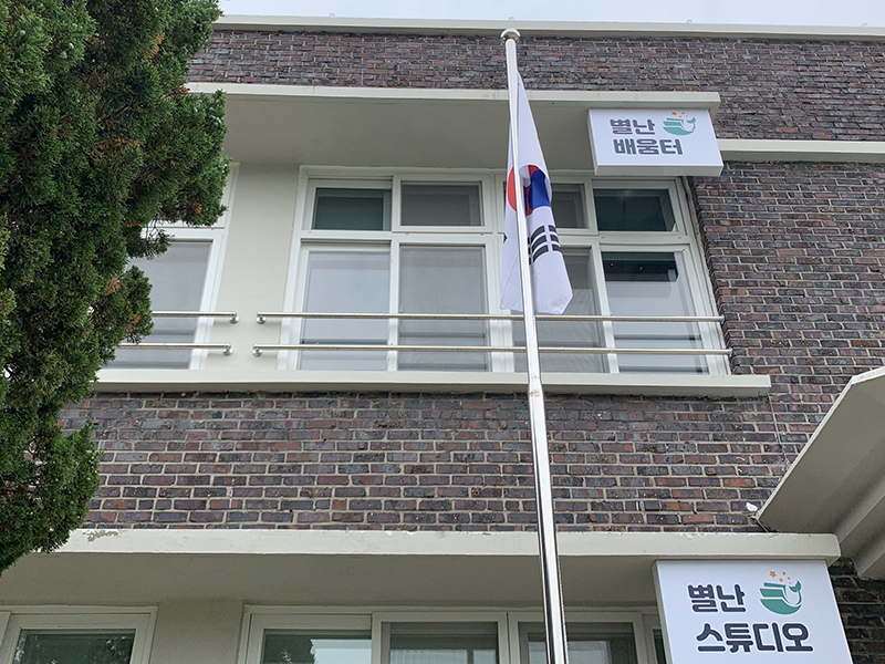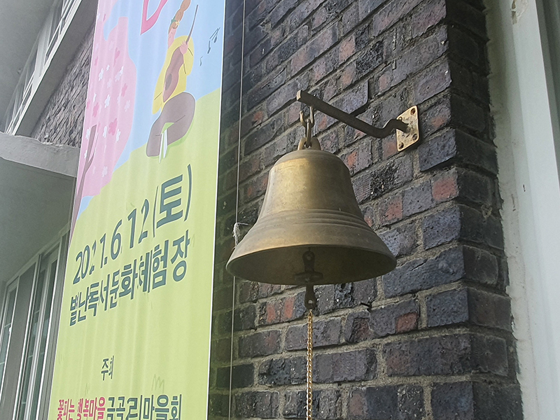학교종과 태극기 덕에 이 곳이 예전에 학교였다는 생각하게 합니다.